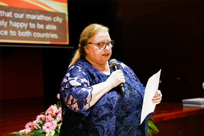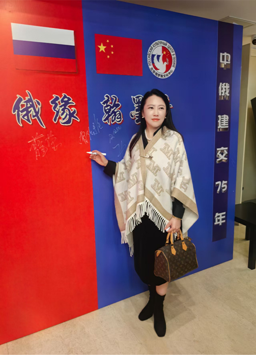 在被授予荣誉后,薛莹主任发表了真挚感言。她表示,自己作为中俄文化交流的桥梁,将肩负起这份沉甸甸的责任,继续推动两国在文化、艺术、教育等多个领域的深层次交流。她希望通过双方的共同努力,将中俄友谊的根基打得更牢,进一步促进两国人民的相互理解和情感共鸣。“文化是最能够跨越国界的力量,”薛莹主任提到,“它能将不同民族的心灵紧密相连。”她还表达了对未来中俄文化合作的美好愿景,期待通过更多的文化艺术项目让中俄两国的友谊绽放出更加绚丽的色彩。