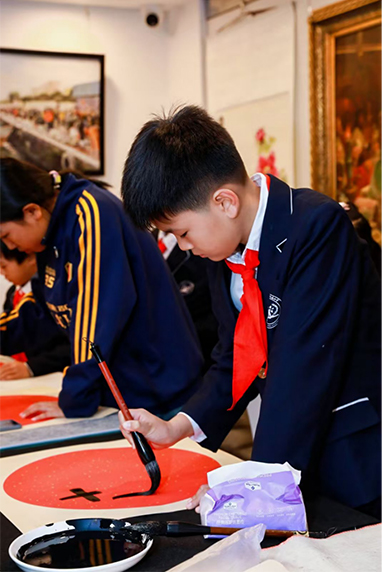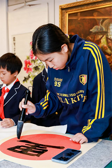 【图8-11:书法活动 拍摄时间:2024年10月5日 图片说明:学生们在活动中书写书法,展现中华文化的独特魅力】