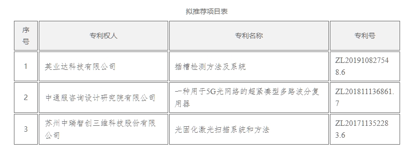 关于拟推荐第二十五届中国专利奖项目的公示