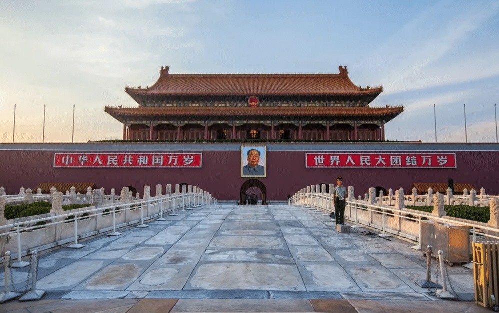 天安门城楼两侧有两条标语:“中华人民共和国万岁,世界人民大团结万岁”,这两条标语正是由古今明书写.