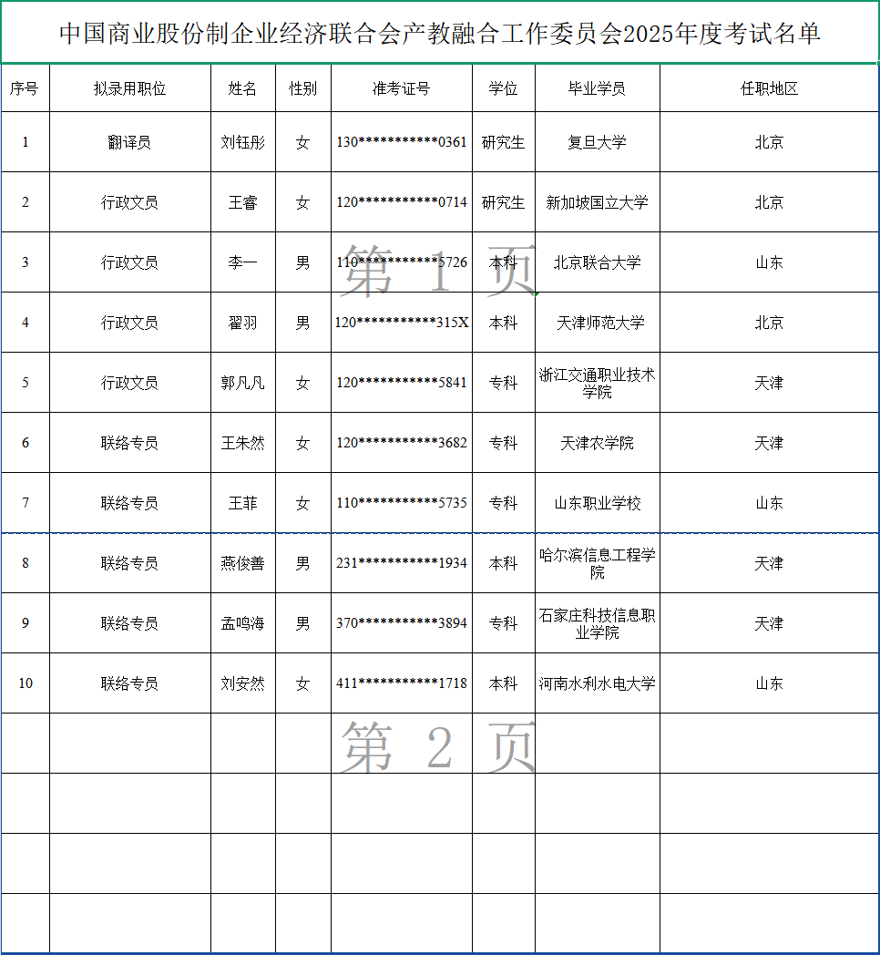 根据中国商业股份制企业经济联合会产教融合工作委员会2025年度考试录用员工作有关要求,经筛选体检和考察等程序,确定10人为中国商业股份制企业经济联合会产教融合工作委员会准入笔试人员及名单(名单附后),现予以公示。公示期间如有问题,请向中国商业股份制企业经济联合会反映。